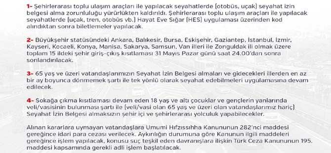 İçişleri Bakanlığı'nın son genelgesi ile kısıtlamalarda yeni düzenlemeler yapıldı.