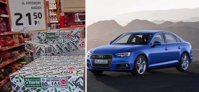 Geçtiğimiz yıl okul döneminde 7-8 lira civarında olan bir paket A4 kağıdı, 21-25 tl aralığında satılıyor. Vatandaşlar A4 kağının Audi A4 ile yarıştığını söylüyor. A4 kağıdı yüzde 200'ün üzerinde bir zam yemiş durumda!
