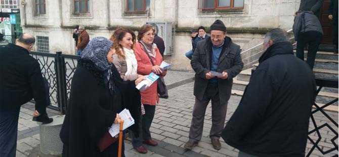 Bazen cami önünde bazen pazarda broşür dağıtıp, insanlarla sohbet eden gönüllüler partiye de katkı sunuyorlar.