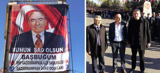 MHP Gaziosmanpaşa Teşkilatı ve Ülkü Ocakları, ilçe meydanına "Ruhun Şad Olsun Başbuğum" yazılı afiş astı.