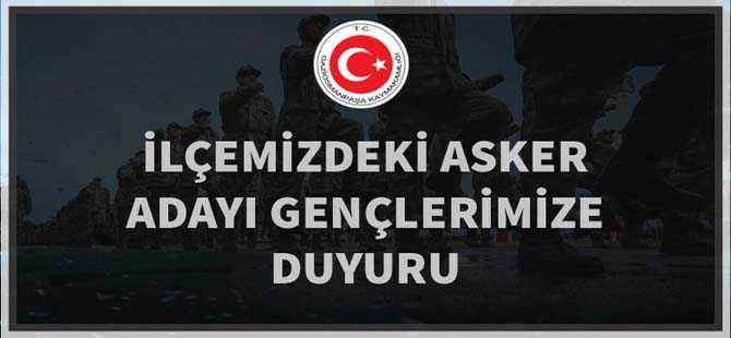 Gaziosmanpaşa Kaymakamlığı ilçe bulunan asker adaylarıan yönelik bir duyuru yayımladı...
