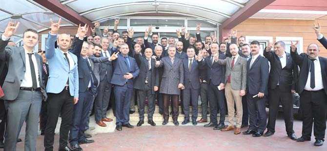 Toplantı sonrası Başkan Hasan Tahsin Usta, MHP teşkilatı ile birlikte verdiği fotoğrafta bozkurt işareti yaptı.