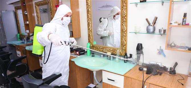 Berber ve Kuaförler Dezenfekte Ediliyor