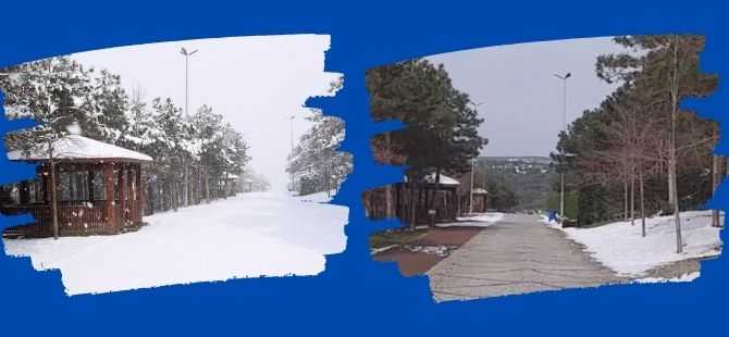 Aradan geçen bir hafta içinde aynı noktada karın eriyerek gittiği görüntülendi. Bir hafta önce kara parçası görülmezken, bir hafta sonra yolların ve kanarın açıldığı görüldü.
