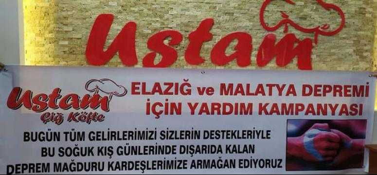 Gaziosmanpaşa Yıldıztabya'da bulunan Ustam Çiğ Köfte sahibi Mahmut Özacar, 29.01.2020 Çarşamba günkü hasılatı Elazığ ve Malatya'daki depremzdelere verecek.