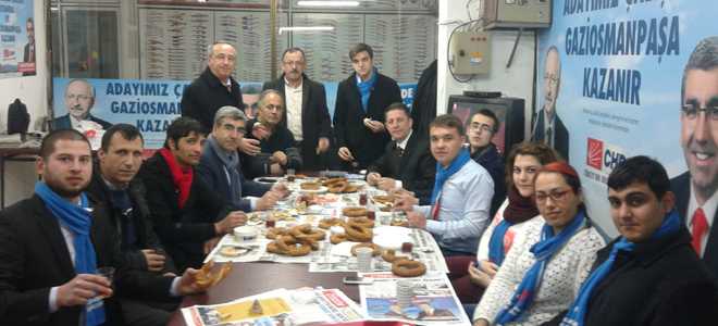 CHP Gaziosmanpaşa Belediye Başkan Adayı ve çalışma ekipleri simit ve çayla atıştırarak yola devam ediyor.