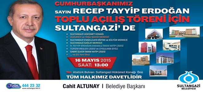 16 Mayıs 2015 Cumartesi günü Sultangazi Hükümet Konağı önünde düzenlenecek toplu açılış töreni ile 7 yeni hizmet binası ile 25 yeni okul binası Sultangazililerin hizmetinde olacak.