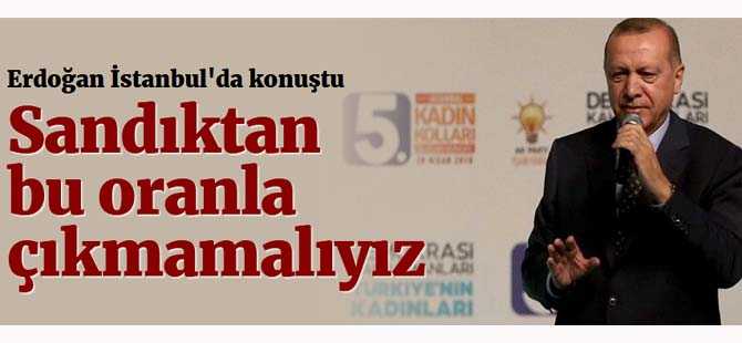 AK PArti için İstanbul’un çıtası yüksektir. Aksi takdirde hedefimize ulaşamayız. Unutmayınız, İstanbul sadece İstanbul değildir. İstanbul Türkiye’dir. İstanbul dünyadır. Tıpkı dünyanın ve Türkiye’nin yarısı gibi İstanbul’un yarısı da hanımlardır. Dolayısıyla sizlerin gösterdiği çaba ve sonuç Türkiye’nin kazanılmasında hayati öneme sahiptir. 81 vilayetimizin burada temsilcisi var mı? Var. Öyleyse ele ele vereceğiz, 24 Haziran’da destanımızı yazacağız.
