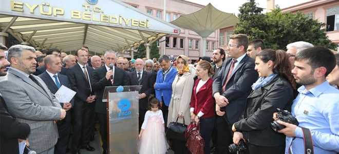 Eyüp Belediye Başkanı Remzi Aydın da törende yaptığı konuşmada, “Başkanımız İsmail Kavuncu’ya tüm hizmetleri için, çalışmaları için, bize destekleri için çok teşekkür ediyorum. Eyüp Sultan’a yakışan projelerimizi gerçekleştirerek ilçemizde çok güzel çalışmalara imza atacağız. Ben başta Sayın Başbakanımız olmak üzere, İBB Başkanımız Sayın Kadir Topbaş’a, İl Başkanımız Sayın Aziz Babuşçu’ya, İlçe Başkanımız Sn. Rasim Bozkurt ve tüm teşkilat üyelerimize, kadın kollarımıza, gençlik kollarımıza teşekkür ediyorum. Hepinizden Allah razı olsun. Görevimiz asıl şimdi başlıyor. Hep birlikte daima millet hizmet için gece gündüz, dur durak demeden çalışacağımıza söz veriyoruz. Çünkü bizim arkamızda milletimiz var” dedi.