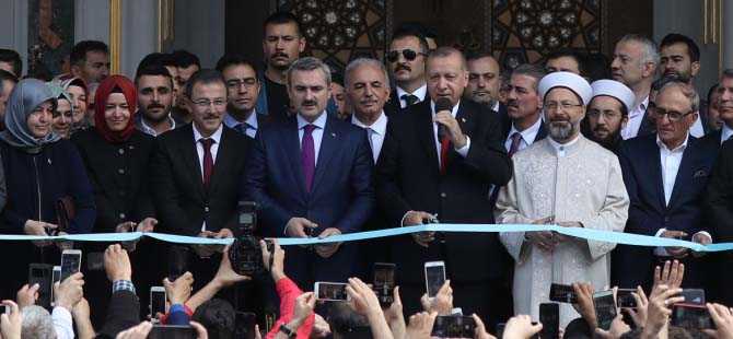 Namazın ardından Erbaş tarafından okunan duadan sonra kurdele keserek caminin açılışını gerçekleştiren Erdoğan, vatandaşlara hitap etti.