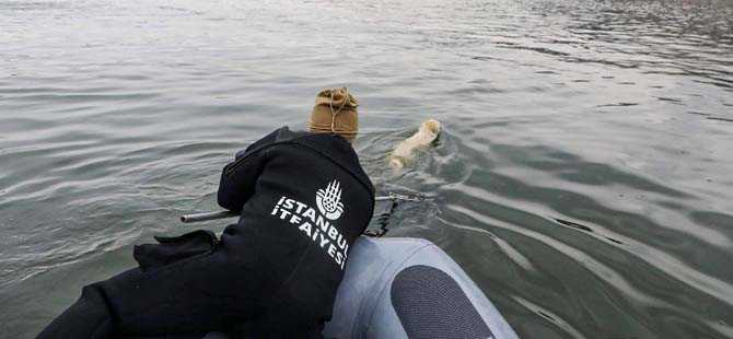 Eyüpsultan Haliç içerisinde bulunan tavşan adasında mahsur kalan köpek kurtarıldı.