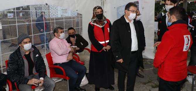Eyüpsultan Meydan’da kurulan kan bağışı kampanyası çadırını ziyaret eden Başkan Deniz Köken, kan veren vatandaşlara teşekkür etti.  Koronavirüs salgını endişesiyle vatandaşların kan bağışında bulunmaması üzerine Kızılay’ın stoklarının da büyük oranda düştüğünü belirten Başkan Deniz Köken, “Koranavirüs kan bağışı yapmaya mani değil. Şu an kritik seviyelerde olan kan stoklarını artırmamız gerek. Biz de Eyüpsultan Belediyesi olarak üç gün süren bir kan bağışı seferberliği başlatarak Kızılay’ımıza destek olmak istedik. Kan bağışı hayati önem taşıyor. Herkesi kan bağışında bulunmaya davet ediyorum” dedi.