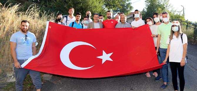 Eyüpsultanlı karateci gençler, yurda dönen Aktaş’ın evinin önünde meşalelerle kutlama yaptı.