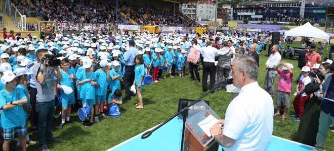 Törende Başkan Remzi Aydın, yaz okuluna gidecek öğrencilere, içerisinde çocukların okullarda kullanacakları malzemeler olan çantaları dağıttı.Öğrencilerin yaz boyunca bir yandan güzel vakit geçirecekleri diğer yandan da alacakları eğitimler sayesinde yeteneklerini geliştirecekleri Yaz Okulları başladı. Eyüp Belediyesi Yaz Okulları’nın başlaması ile ilgili Eyüp Stadı’nda düzenlenen törene çocuklar ve aileleri yoğun ilgi gösterdi. Malzemelerini almak için stada gelen çocuklar saha içini doldururken, en az onlar kadar heyecanlı olan velileri de tribünden töreni izlediler.HER ŞEY EYÜP’TE MUTLU, FERAH VE HUZURLU BİR YAŞAM İÇİNTörende malzeme dağıtımı öncesi sahneye gelen Başkan Aydın “Bu sene geçen seneye göre Yaz Okullarımızı katılım sayısını arttıracak şekilde tertip ettik. Hem sayımız artıyor hem de yapacağımız etkinlikler artıyor. Bu yaz 5 bin çocuğumuz Yaz Okullarında ağırlanacak. Çocuklarımız yaz okullarında sadece spor yapmayacaklar, kültürel, sosyal aktiviteler de yapacaklar, değerler eğitimi alacaklar. Dolayısıyla dolu dolu bir program hazırlandı. Okullarımızda 8 ayrı spor aktivitesi yapılacak, ilmihal, siyer ve Kur’an-ı Kerim dersleri verilecek, atölyelerde müzik, satranç, akıl oyunları, sinema, tiyatro gibi eğitimler verilecek. 1453 Panorama, Vialand, Miniatürk gibi mekanları çocuklarımıza gezdireceğiz. Her şey çocuklarımız için, her şey geleceğimiz için, her şey Eyüp’te mutlu, ferah ve huzurlu bir yaşam için” şeklinde bir konuşma yaptı. “HER ŞEYİN EN İYİSİNİ YAPALIM”“Her Şeyin En İyisini Yapalım” ilkesiyle hareket eden Eyüp Belediyesi, bu yaz Yaz Okulları programını da bu ilkeye uygun bir şekilde hazırladı. Yaz Okulları; Alibeyköy Spor Kompleksi, Eyüp merkez Kız Anadolu İmam Hatip Lisesi, Yeşilpınar Cumhuriyet Ortaokulu ve Kemerburgaz - Göktürk bölgesi Şehit Sinan Er Ortaokulu olmak üzere 4 ayrı bölgede yapılacak.