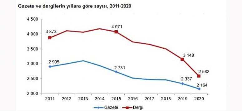 Gazete ve dergi sayısı yüzde 13,5 azaldı