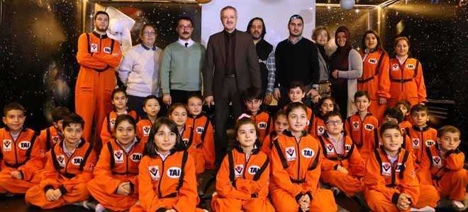 Ziyaret sırasında Ali Kuşçu Uzay Evi’nde derslere de katılan heyet, Kozmonot Muhammed Fares’in çocuklara verdiği eğitimi dinledi.