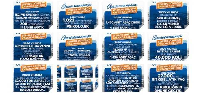 2020 yılında Gaziosmanpaşa’mızı geleceğe taşıyacak, vatandaşlarımıza sosyal yönden destek olacak ve ilçemizin her bir noktasına değer katacak birçok hizmete sizlerle birlikte imza attık.