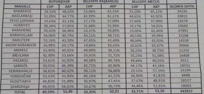 Merkez mahalllerinde ise İyi Parti'nin etkisi ile CHP'nin oy aldığı görülüyor. Karayolları Mahallesi'nde ise eski HDP oylarınının daha çok CHP'ye kanalize olduğu görülüyor. Yalnız Sarıgöl ve Bağlarbaşı Mahallesi'nde CHP beklenen oyu alamamış!