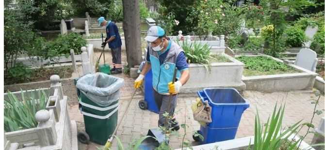 Kurban Bayramı arefe gününde yapılan çalışmalar kapsamında önce mezarlık alanında bulunan çöpler toplandı. Ardından mezarlıklardaki tüm yollar temizlendi. Mezarlıkların içerisinde bulunan yabani otları temizleyen ekipler, çevre düzenlemesi yaparak mezarlıkları ziyaretlere hazır hale getirdi.