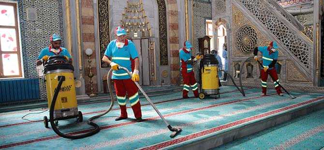Gaziosmanpaşa’da camiler, Ramazan hazırlıkları kapsamında litrelerce gül suyu kullanılarak yapılan detaylı temizlikle ilk teravihe hazır hale getirildi.