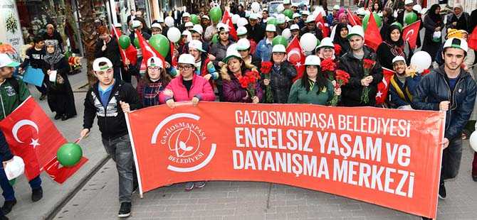 Gaziosmanpaşa Belediyesi’nin Down Sendromlular Farkındalık Günü’nde yaptığı etkinlikte, down sendromlu çocuklar meydanda yürüyüş yaparak vatandaşlara karanfil dağıttı.