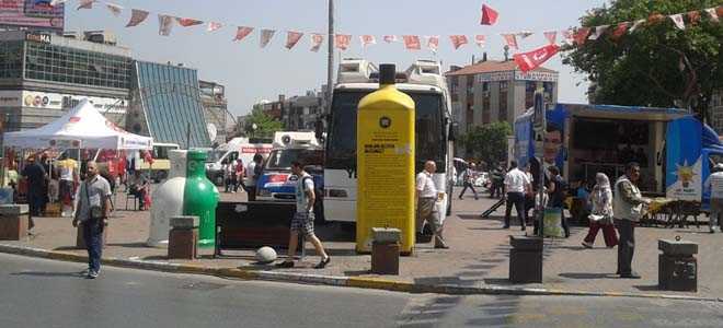 Genel seçim çalışmaları Gaziosmanpaşa Meydan'da devam ediyor. Her siyasi parti çalışmalarının bir örneğini meydanda sergileme niyetinde. Ama niyetler çokta halis olmuyor. Vatandaş ve çevre esnafı gürültüden rahatsız!