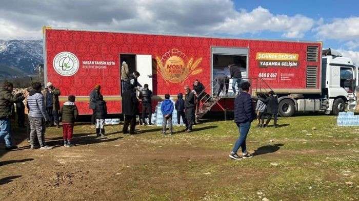 Günlük 10 bin ekmek kapasiteli mobil fırın ve mobil mutfak, depremzede vatandaşların hizmetinde. Gaziosmanpaşa Belediyesi ekipleri bölgede sıcak yemek, ekmek ve su ikramı yapıyor. Ayrıca belediye tarafından yönlendirilen mobil büfe de günün farklı saatlerinde çorba, çay ve su ikramında bulunuyor.