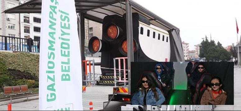 Gaziosmanpaşa Belediyesi’nin ücretsiz olarak düzenlediği etkinliğe katılan çocuklar, görüntüleri, 3 boyutlu hareketleri ve efektleriyle bir uzay mekiğinin içinde yaşananları bire bir hti. Çocukların ufkunu genişletmek ve bilime olan ilgisini artırmak için düzenlenen etkinlikte öğrenciler, yıldızların ve gezegenlerin hareketlerini yakından görme imkanı buldu.