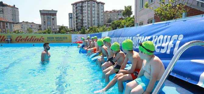 Gaziosmanpaşa Belediyesi, pandemi döneminde evlerinde kalarak sürece destek veren çocukları ücretsiz yüzme havuzuyla ödüllendiriyor. Gaziosmanpaşalı çocuklar, havuzlarda hem yüzme öğreniyor hem de eğleniyor.