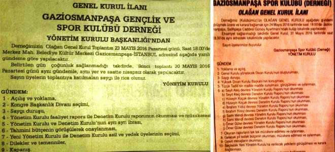 Gaziosmanpaşaspor yapıalcak kongre öncesi iki ayrı tarihli kongre ilanının hangisi doğru...