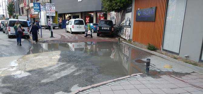Gaziosmanpaşa Salihpaşa Caddesi üzerinde bir inşaat firmasının yol kenarına kurduğu satış ofisi nedeniyle yol her yağmurda göle dönüyor.