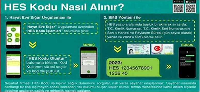 Vatandaşlar, tüm ulaşım süreçlerinde Hayat Eve Sığar Mobil Uygulaması üzerinden ya da kısa mesaj yoluyla HES Kodu alacak. Aldığı HES Kodunu bilet alırken ilgili seyahat firması ile paylaşacak.