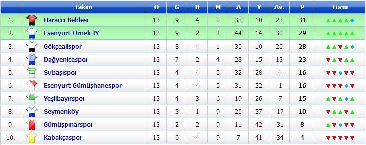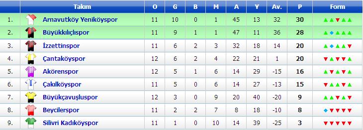 7.Grup16:30 Emirefendi – Çatalzeytin (Beyoğlu Bld. Sütlüce) 3-816:30 İstanbul Ünye – Kumkapı Sarıçubuk (Albayrak Suni Çim) 3-516:30 Uskumru Köyü – Günyamaç (Bahçeköy Orman Fakultesi) 3-416:30 Çayırbaşı Özkan – Siteler (Sarıyer Bld.Çayırbaşı) 3-0