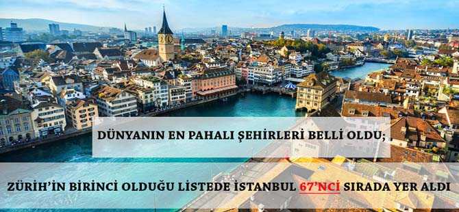77 farklı şehirden 2018 yılı Ocak ve Nisan ayları baz alınarak hazırlanan dünyanın en pahalı şehirleri raporuna göre, Türkiye pahalılık oranıyla listenin 67’nci sırasında yer aldı. Dünyanın en pahalı şehri unvanına ise İsviçre’nin başkenti Zürih sahip oldu.