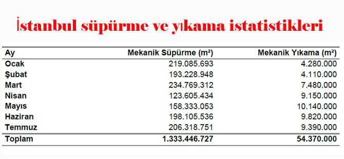 İstanbul’da her gün İSTAÇ tarafından gerçekleştirilen mekanik süpürme alanı 2020'de ortalama olarak 6.260.313 m², İstanbul meydanlarında günlük gerçekleştirilen ortalama yıkama alanı ise 255.258 m²’oldu.