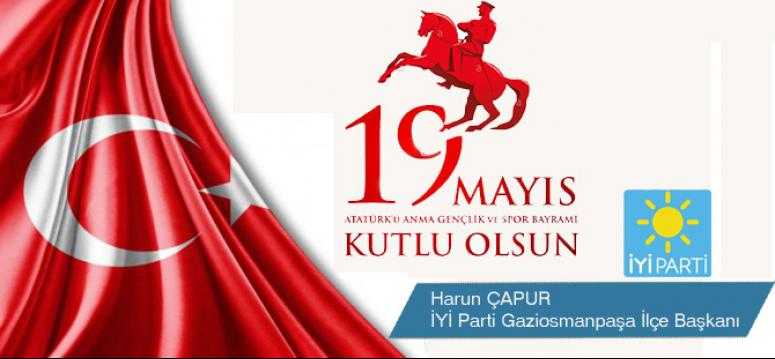 19 MAYIS ATATÜRK'Ü ANMA GENÇLİK VE SPOR BAYRAMI TÜM ULUSUMUZA KUTLU OLSUN..... İYİ PARTİ GAZİOSMANPAŞA İLÇE BAŞKANI HARUN ÇAPUR