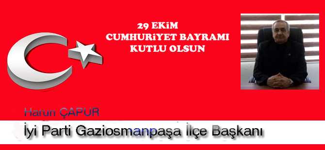 İYİ PARTİ GAZİOSMANPAŞA İLÇE BAŞKANI HARUN ÇAPUR 29 EKİM CUMHURİYET BAYRAMI KUTLAMA MESAJI...