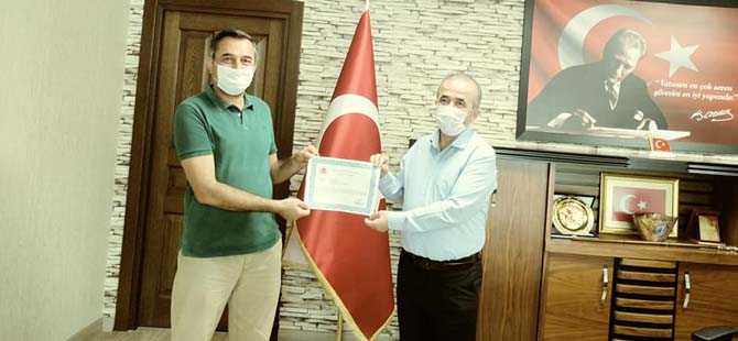 Gaziosmanpaşa Kaymakamı Numan Hatipoğlu, Koronavirüs salgın sürecinde sahada gösterdiği özverli çalışmalardan dolayı editörümüz Ali Şükrü Kara'ya TAKDİRNAME Belgesi verdi.