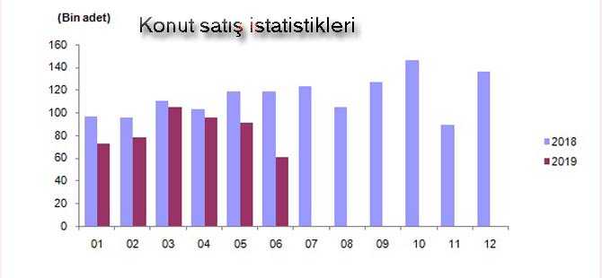 TUİK verilerine göre, Türkiye genelinde konut satışları 2019 Haziran ayında bir önceki yılın aynı ayına göre %48,6 oranında azalarak 61 355 oldu.