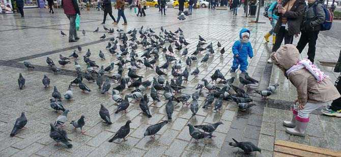 Meydanlarda beton üzerine kuşlar için yem serpiliyor. Hem meydan kirleniyor hem kuşlar rahat edemiyor.