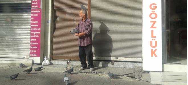 Güvercinler baş üstünde yem yiyor...