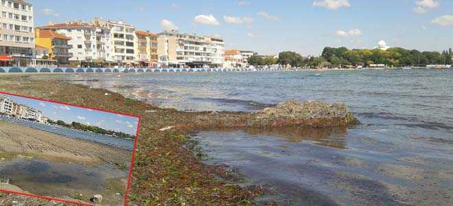 Marmara Ereğlisi merkezinde yosunlar ada oluşturuyor.