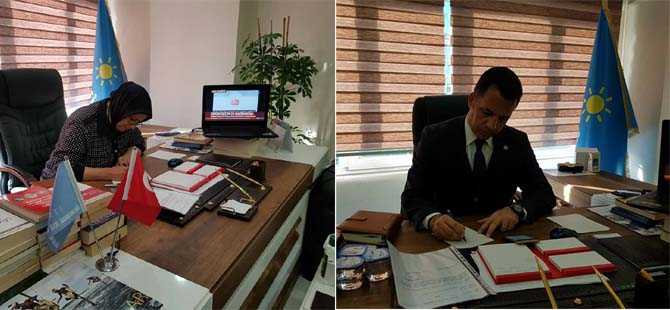 Genel İdare Kurulu Üyesi Havva Baș ve Sosyal Politikalardan Sorumlu Başkan Yardımcısı Ahmet Can Buğday, İyi Parti Genel Başkanı Meral AKȘENER'in Cumhurbaşkanlığı adaylığı için gereken imzalı dilekçeyi, İYİ Parti Gaziosmanpaşa İlçe Başkanlık makamında imzaladılar.