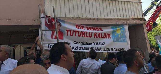 İyi Parti Gaziosmanpaşa İlçe Başkanı Cengizhan Yıldız ve partililer kalabalık bir grupla Akşener'in evinin önünde bekleyişini sürüdüryor. Gaziosmanpaşa Teşkilatı Akşener'in evinin önüne "Biz sende tutuklu kaldık" yazılı afiş astı.