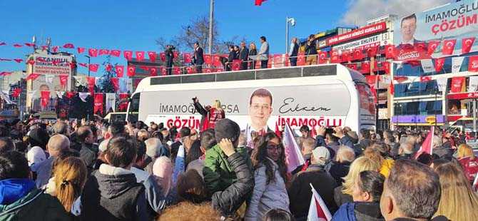 İyi Parti ve CHP'nin İBB ortak adayı Ekrem İmamoğlu, Gaziosmanpaşa Meydana seçim otobüsü ile gelerek miting yaptı.
