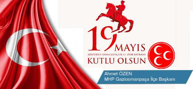 19 MAYIS ATATÜRK'Ü ANMA GENÇLİK VE SPOR BAYRAMI TÜM ULUSUMUZA KUTLU OLSUN MİLLİYETÇİ HARAKET PARTİSİ GAZİOSMANPAŞA İLÇE BAŞKANI AHMET ÖZEN