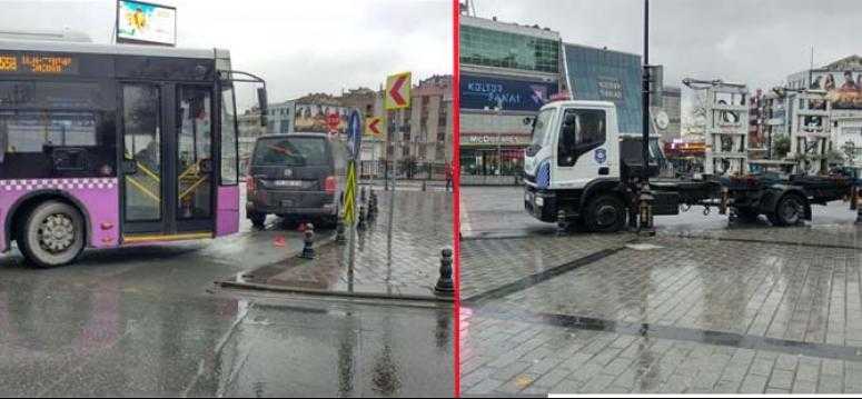 Gaziosmnapaşa Meydan kavşakta park eden minibüs trafiği kilitledi. Peki 50 metre ötede çekici şoförsüz neyi bekledi...