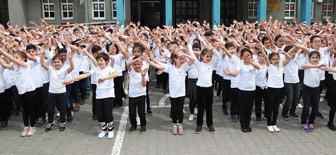 Gaziosmanpaşa’da minik öğrenciler “Sıfır Atık Projesi”ne dikkat çekmek için 1.200 kişilik dev bir koro oluşturdu. Hep bir ağızdan “Sıfır Atık” şarkısını seslendiren minikler, çevre için farkındalık oluşturdu.
