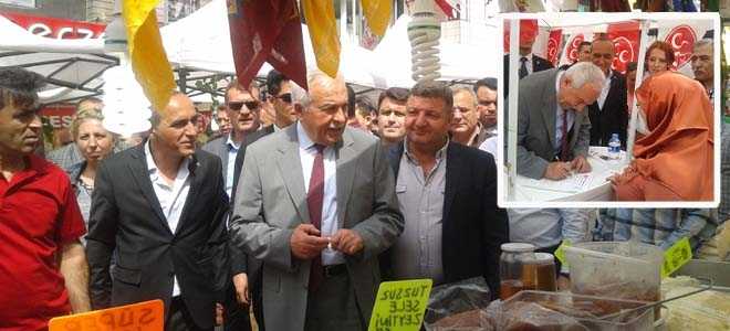 MHP'nin meydan da kurulan standını da ziyaret eden Başesgioğlu, üye olmak için bekleyen vatandaşların üyeliklerini kendisi bizzat yaptı.