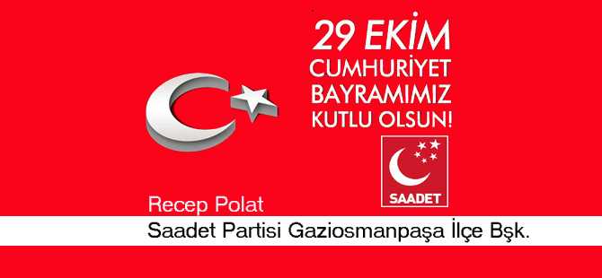 SAADET PARTİSİ GAZİOSMANPAŞA İLÇE BAŞKANI RECEP POLAT 29 EKİM CUMHURİYET BAYRAMI KUTLAMA MESAJI...